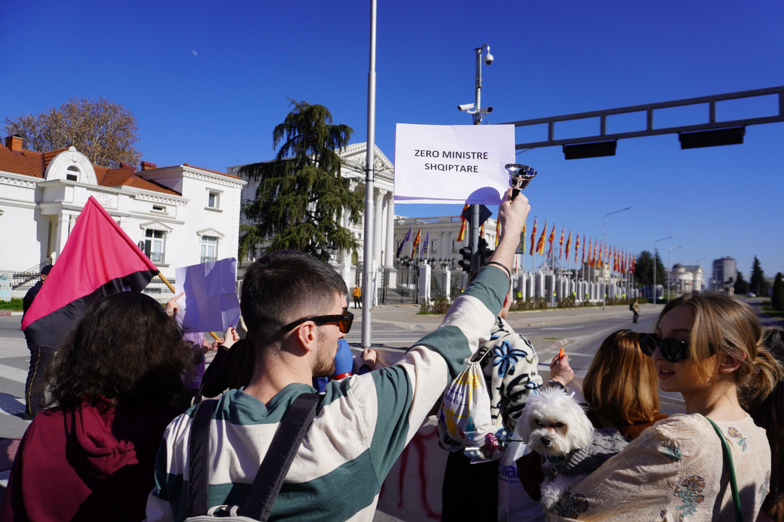 Ndërkaq kur protestuesit arritën para Qeverisë së RMV-së, Mollëkuqja ngriti pankartën “Zero ministre shqiptare”, për të vënë në pah (mos) përfaqësimin e gruas shqiptare në ekzekutiv.